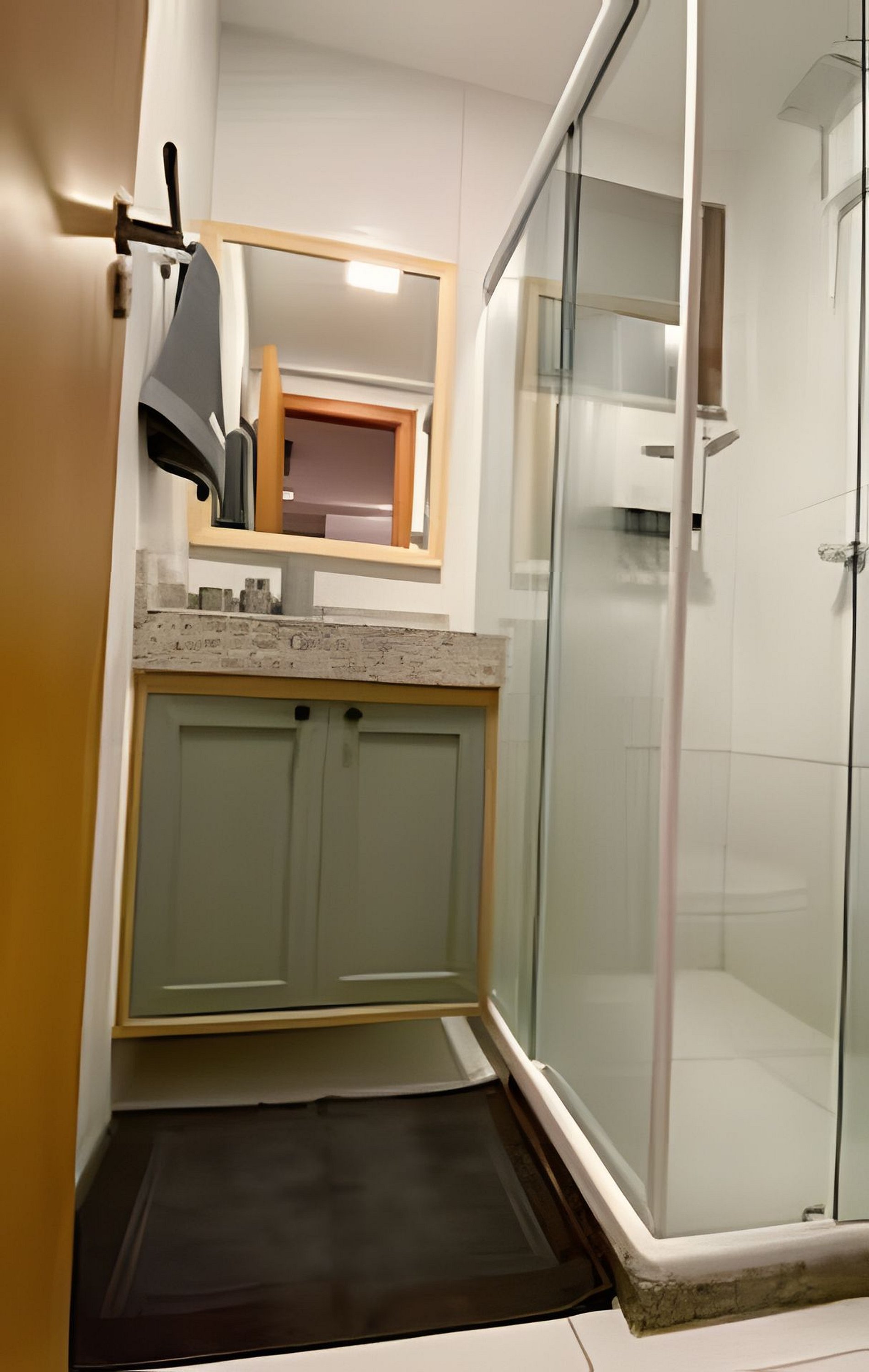 On the balcony we have a table with 4 super comfortable chairs, a sink and a view of the garden and Tiê Residencial swimming pool.