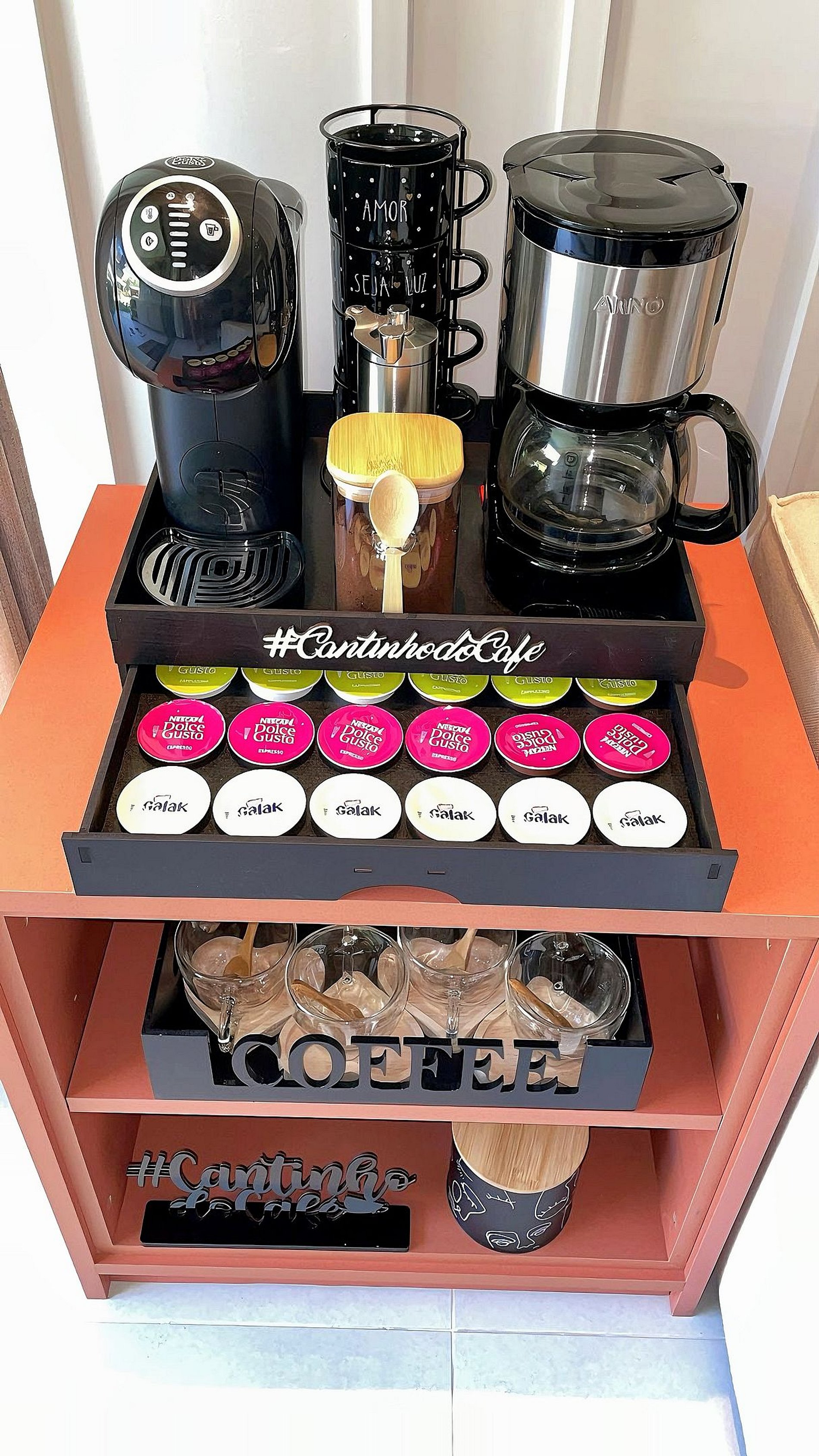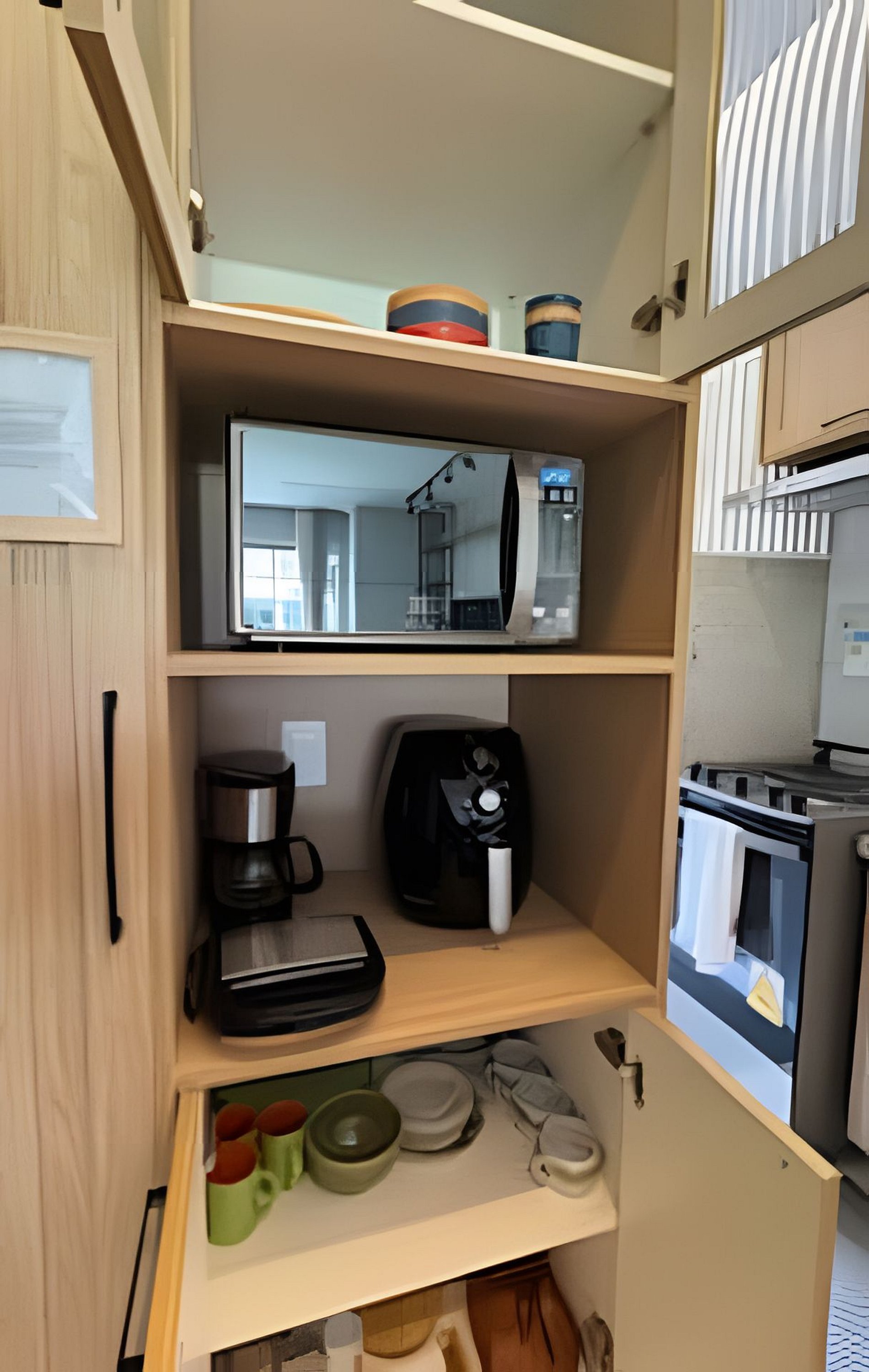 Cozinha toda equipada e nova: Geladeira inox, fogão inox, air fryer, Cafeteira elétrica, Cafeteira Dolce Gusto, filtro eletrolux, máquina de lavar, todos os utensílios de cozinha, pratos, copos, garfos, xícaras , petisqueira e pirex. Taças de cristal.