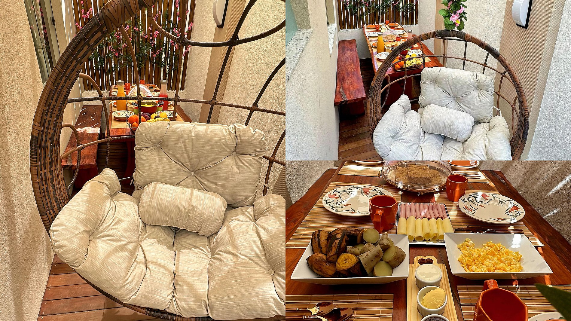 Torne sua estadia ainda mais especial com nossas deliciosas comidas, bebidas e sobremesas exclusivas, disponíveis para compra. Consulte a plaquinha na casa para mais detalhes e o número Pix para pagamento.